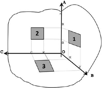 Фигура, образованная проекциями свойственных данному субъекту в профессиональном пространстве областей (см. области 1, 2, 3 на рис. 6), может быть рассмотрена как модель профессиональной личности конкретного педагога. Эта фигура позволит определить не только приоритетные направления дальнейшего развития данной личности и ее профессиональный тип, но и возможные деформации и отклонения, характерные для нее в педагогической среде.