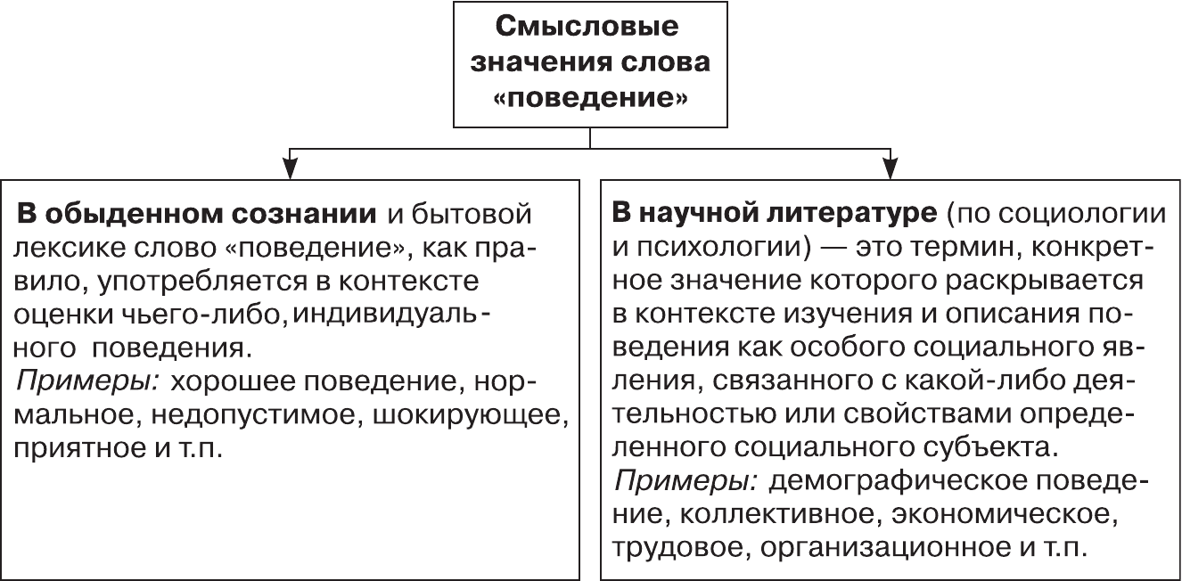 Рис. 2.1. Различия смысла слова «поведение» в быту и науках о поведении