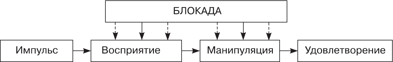Данная способность отчетливо наблюдается, когда нарушение равновесия происходит уже в процессе поведенческого акта, на стадиях восприятия или манипуляции. Речь идет о внезапном прерывании акта, обозначаемом термином «блокада» (рис. 3.5).