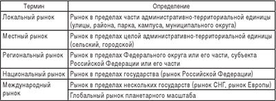 Конкуренция всегда имеет определенную географию, масштабы (разворачивается на международном, национальном, региональном, местном, локальном, рынках (табл. 1.1), конкретный состав участников.