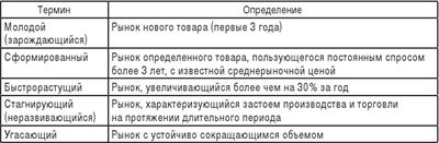 Конкурентные действия производятся на рынках, различающихся между собой по уровню зрелости (табл. 1.2). Выделяют молодой (зарождающийся), сформированный, быстрорастущий, стагнирующий (неразвивающийся) или угасающий рынки.