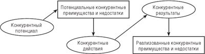 Поэтому соперничая между собой за бизнес-процессы, участники рынка вступают в конкуренцию за превосходство и (или) за недопущение отставания от соперников в выполнении конкурентных действий. Конкурентные действия (как конкурентные результаты и конкурентный потенциал) являются носителями конкурентных преимуществ и недостатков субъектов предпринимательства. Чем сильнее и качественнее выполняемые конкурентные действия, тем большими конкурентными преимуществами обладают участники рынка, и наоборот.