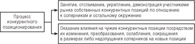 Поскольку обобщенным результатом взаимодействия субъектов предпринимательства в конкурентной среде являются конкурентные позиции сторон (подробно об этом – в параграфе 1.5), это взаимодействие правомерно определить также как взаимное конкурентное позиционирование сторон – постоянный процесс формирования, поддержания и развития ими конкурентных позиций. Конкурентное позиционирование включает (рис. 2.1):