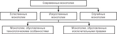 В условиях законодательных ограничений монополизации рынков монополия может возникнуть вследствие естественных, искусственных или случайных причин (рис. 3.10).