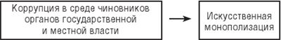 Главная причина возникновения искусственной монополизации – коррупция в среде чиновников (рис. 3.12). Искусственная монополизация рынков наиболее характерное проявление сращивания государственной власти с интересами участников рынка и установления государственно-монополистического диктата в экономике.