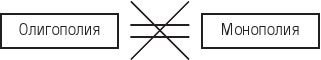 Олигополию часто путают с монополией, однако эти понятия не следует воспринимать как тождественные (рис. 3.13). Под олигополией понимается сосредоточение наиболее крупных долей рынка, его сектора, или сегмента, в руках небольшого числа (2–4) субъектов предпринимательства. Сам термин «олигополия» переводится на русский язык с греческого как «власть немногих». Олигополия, участниками которой становятся два субъекта предпринимательства, называется дуополией («власть двоих»).