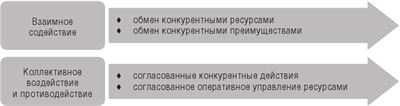 Рис. 3.30. Взаимное содействие, коллективное воздействие и противодействие в стратегии кооперации с конкурентами