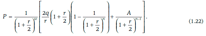 Если расчетная дата приходится на дату купонного платежа, то цена облигации считается равной ее котируемой цене и может быть найдена по формуле (1.18). Если же расчетная дата находится между датами купонных платежей, то цена облигации определяется следующим образом: