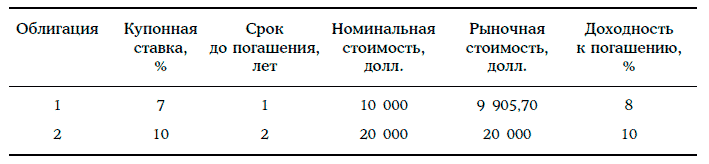 Пример 1.21. Портфель состоит из двух облигаций с полугодовыми купонами, параметры которых указаны в таблице: