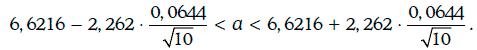 Согласно табл. 1.3, критическое значение распределения Стьюдента t0,025(9) = 2, 262.