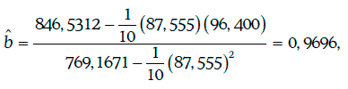 Коэффициенты регрессии а и b чаще всего подбираются методом наименьших квадратов (least squares), который сводится к отысканию значений а и b так, чтобы достигалось наименьшее значение функции