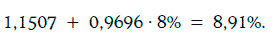 Пример 1.65. Инвестор считает, что через месяц доходность 10-летних казначейских облигаций окажется равной 8 %. Тогда согласно регрессионной модели, построенной в примере 1.63, ожидаемое значение доходности корпоративных облигаций будет равно