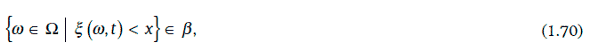 Функция ?(w, t) двух переменных w ? ? и t ? V называется случайным процессом (stochastic process), определенным на множестве V, если для любых t ? V и x ? R (R – множество всех действительных чисел) множество