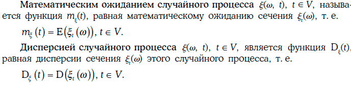 Таким образом, чтобы на множестве V задать некоторый случайный процесс, достаточно каждому моменту времени t ? V поставить в соответствие ту или иную случайную величину ?t(w) – сечение этого случайного процесса. В силу этого случайный процесс можно обозначить как ?t(w) или просто ?t.