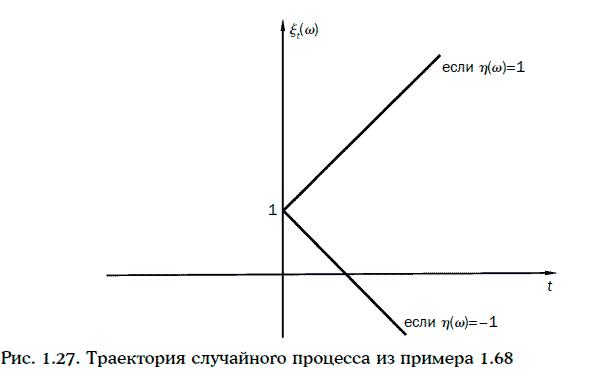 Сечением данного случайного процесса в момент времени t = 2 является случайная величина 2?(w) + 1. Траектории случайного процесса ?(w, t) изображены на рис. 1.27.