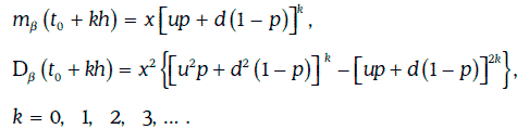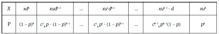 Сечением биномиальной модели в момент времени t0 + kh является дискретная случайная величина, закон распределения вероятностей которой имеет вид: