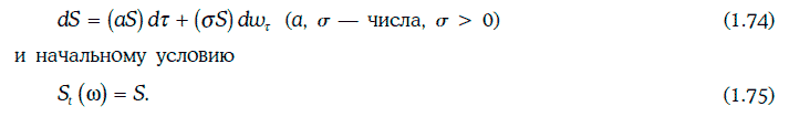 В частности, геометрическим броуновским движением (geometric Brownian motion) является случайный процесс, удовлетворяющий стохастическому дифференциальному уравнению: