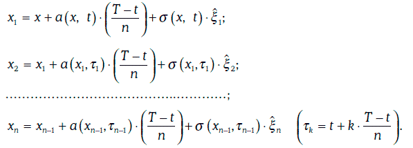Чтобы смоделировать траекторию случайного процесса Ито на отрезке [t, Т], этот отрезок разбивается на n равных частей (n должно быть большим), а затем разыгрывается случайная величина ?, распределенная нормально с параметрами