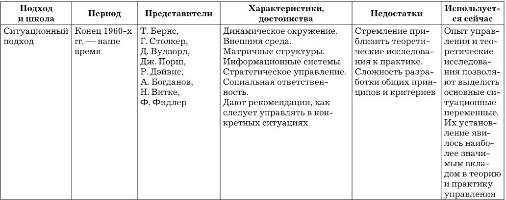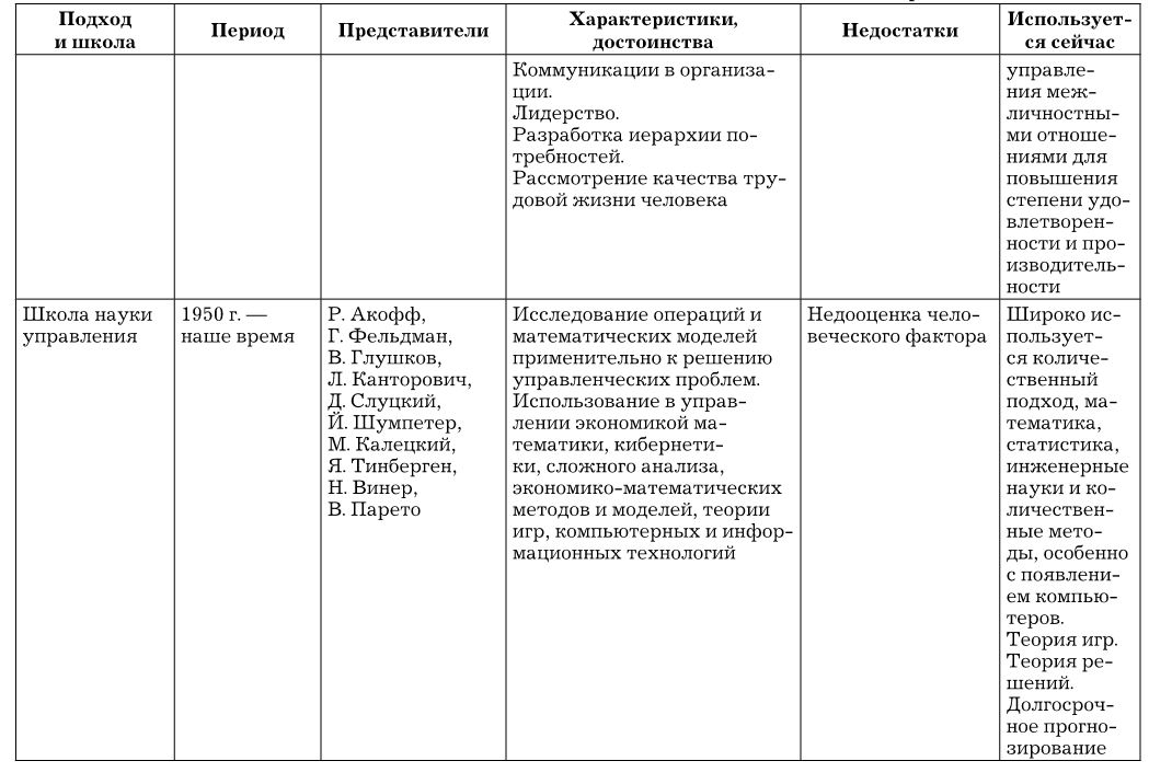 Прежде всего, подход с позиций выделения разных школ в управлении. Он включает пять разных школ, которые рассматривают управление с различных позиций: научного управления, административного управления, человеческих отношений, науки о поведении, а также науки управления, или количественного метода.
