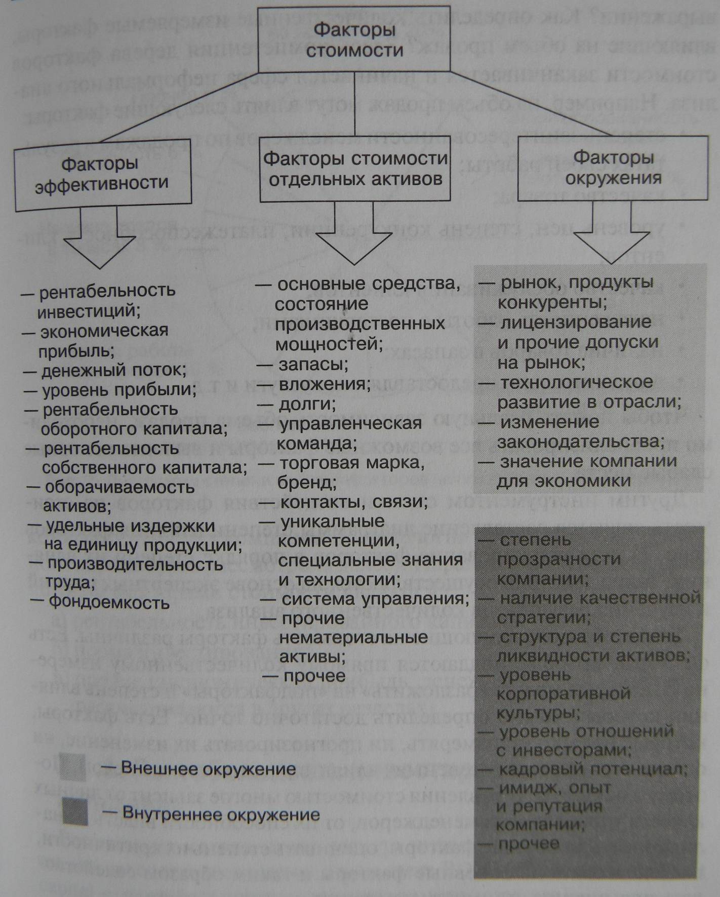На стоимость компании влияет множество факторов. Их можно разделить на три основные группы (см. рисунок ниже):