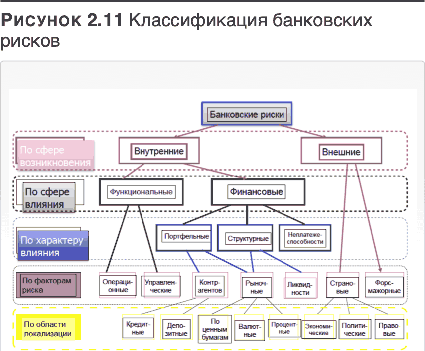 В процессе своей деятельности банки подвергаются множеству рисков, как показано на (рис. см. 2.11, СМ)