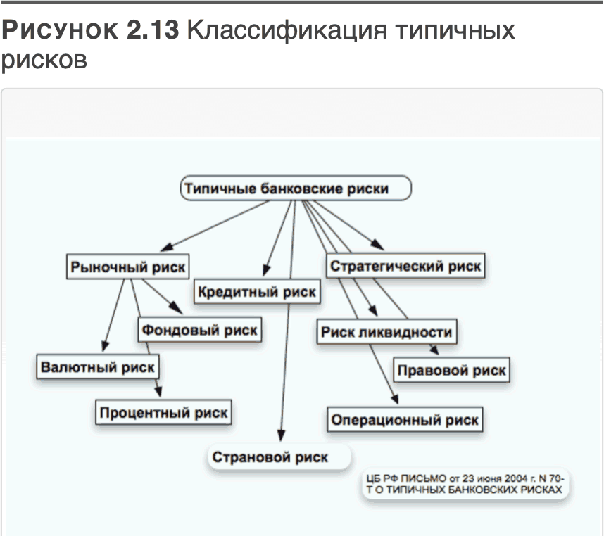 Для целей надзорной деятельности Банк России использует, так называемую, типичную классификацию банковских рисков (рис. 2.13, СМ):