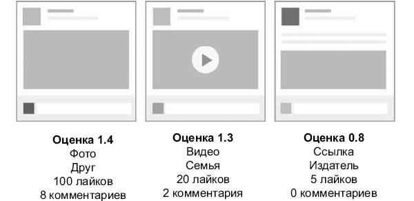 Пример того, как Facebook оценивает сообщения и определяет, что появится в ленте новостей. Источник: TechCrunch