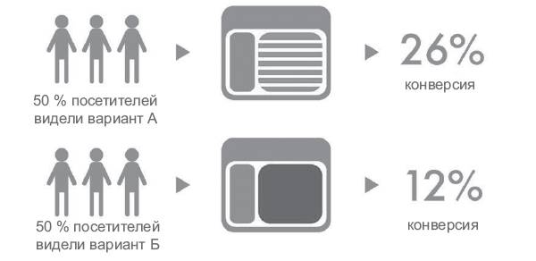На самом деле этот эксперимент проводился для того, чтобы максимально увеличить количество кликов на статьи. В ходе него одной группе, скажем, половине случайно выбранных пользователей, автоматически показывается одна версия заголовка, остальным предлагается другая. Через некоторое время после начала эксперимента разработчики получают конкретную статистику или показатели, например количество кликов на заголовок. Они решают, какая версия лучше, и представляют ту, которая набрала большее количество кликов. Это простой, но действенный способ повысить эффективность работы приложения. Например, на первую версию вышеуказанного заголовка кликнули 3,3 %, а на вторую – 3,9 %. Изменение всего нескольких слов дало прирост в 18 %!