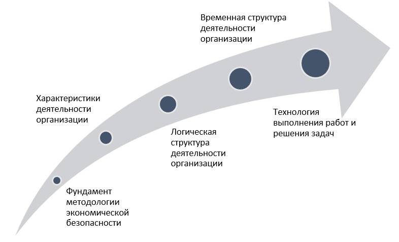 В свою очередь, технология выполнения работ и решения задач, помимо различных средств и методов, включает различные способы, применяемые для обеспечения экономической безопасности. В целом в методологии создания системы экономической безопасности организации можно выделить следующую структуру: