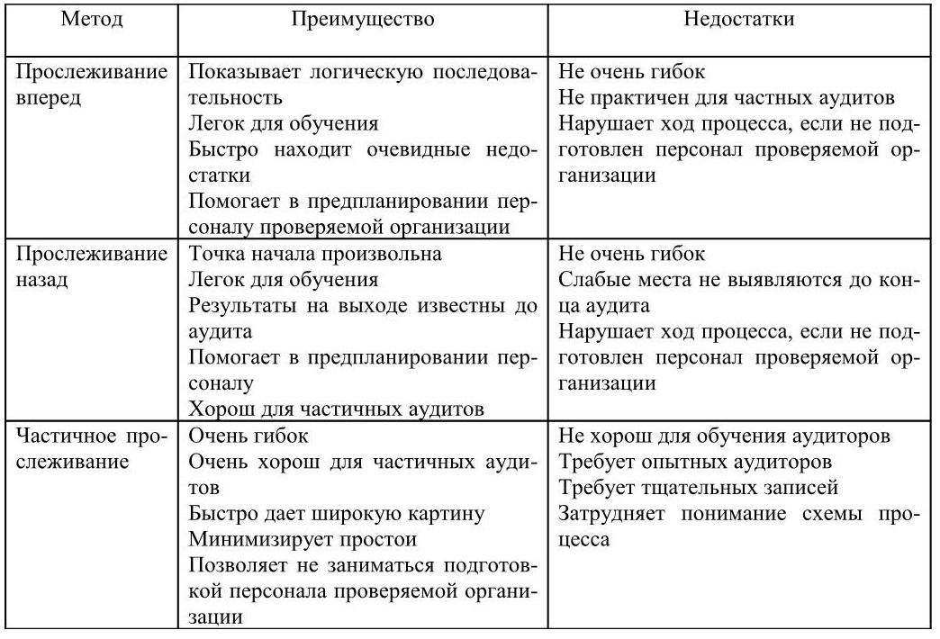 Недостатком данного метода является необходимость дополнительных затрат времени на перемещение аудиторской группы из подразделения в подразделение при отслеживании цепочки процессов. Кроме того, из поля зрения неопытного аудитора могут выпасть вспомогательные процессы (управление документами, записями и т.п.)