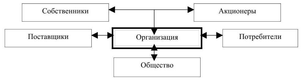 В системе качества, а также в стандарте ISO 9004: 2000 различают пять заинтересованных сторон, взаимоотношения которых можно представить схематично следующим образом (рисунок 4).