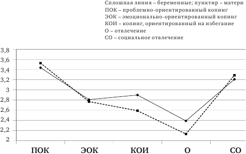 • копинг избегания и отвлечения более выражен у беременных, чем у матерей;