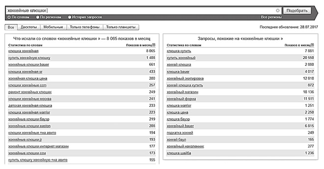 Друг человека находится по адресу wordstat.yandex.ru. Там можно посмотреть спрос в интернете на ваш товар и связанные темы в поиске. Иными словами, если вы вдруг решили делать хоккейные клюшки для тех, кто восстанавливается после травмы, то эту идею бизнеса можно будет отсечь сразу. Потому что «хоккейные клюшки» ищут 8065 раз в месяц по стране, а запросов про восстановление и травмы почти нет. Смотрите: