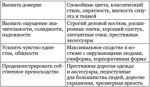 Что касается эмоциональной составляющей одежды, то Е. В. Змановская в книге «Личный имидж» приводит следующую, на мой взгляд, очень хорошую таблицу: