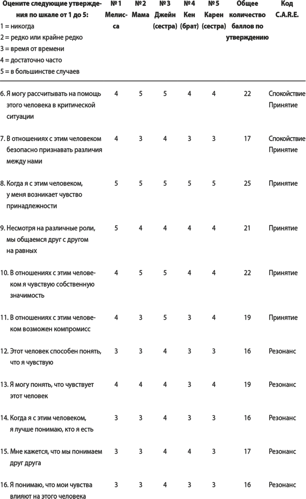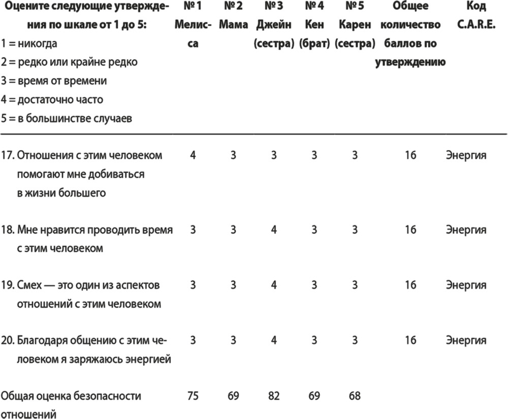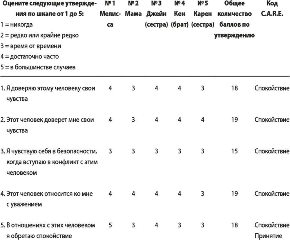 Таблица оценки отношений Мэгги по системе C.A.R.E.