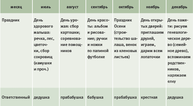 5. Особо рьяные родственники про свой месяц помнят и рвутся реализовать озвученный праздник к всеобщей радости. Тем, кто не проявляет активность, можно вежливо напомнить и вообще подогревать обсуждение этой темы на протяжении года в семейных кругах. Если же родственники забудут про праздник, то, по крайней мере, вы получите план на год с оригинальными идеями, которые можно реализовать силами родителей.
