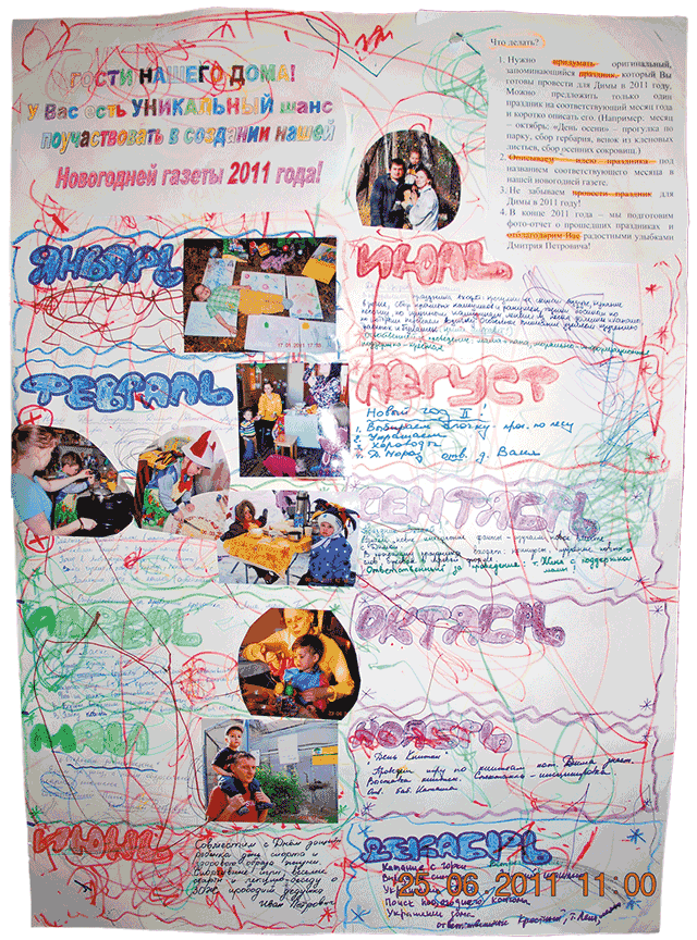 Планирование праздников на год можно осуществлять и в более необычной форме, например, в форме новогодней газеты, как это сделала в 2011 году семья Антонины и Петра Сидельниковых. На Новый год семья заполнила газету названиями праздничных событий, которые предложили провести для ребенка члены семьи (планомерно, по одному мероприятию в месяц). В течение года, каждый месяц после проведения праздника родители дополняют ее фотографиями. Как пишет Антонина, «газета у нас висит в квартире на стене, как “немое напоминание родственникам” и фиксация наших маленьких радостей ?».
