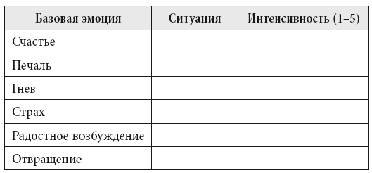 Вспомните недавний случай из жизни, когда вам приходилось целенаправленно понижать, поддерживать или повышать интенсивность своей эмоциональной реакции. Например, когда вам было грустно, предпринимали ли вы что-нибудь, чтобы повлиять на глубину своей печали? А делали ли вы это, когда испытывали чрезмерную тревожность? Иногда люди стараются не думать о том, что вызвало эмоцию, отвлекая себя, отрицая свои переживания или фокусируясь в большей степени на симптомах тревоги, чем на том, что их вызвало. Думая о способах управления интенсивностью эмоций, вы сможете выявить те стратегии, которые для вас полезны, и те, которые не способны повлиять на ваши эмоциональные реакции.