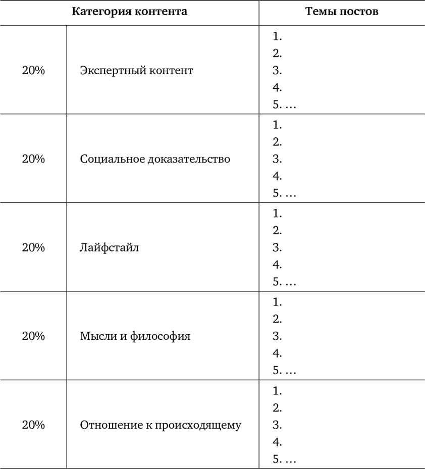Для этого 100 % контента делим на пять категорий – по 20 % каждого.
