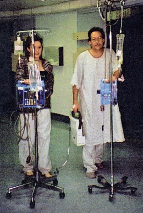 Мы с отцом гуляем по больничному коридору после пересадки почки. Врачи поставили нас на ноги в рекордные сроки!