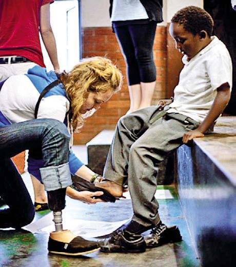 Обуваю в кроссовки детишек в рамках проекта «Обувь – Южной Африке». Их сердца переполнялись любовью и благодарностью. (Фотография любезно предоставлена Марком Фалкенштейном)
