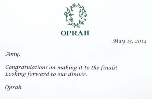 Записка, которую прислала Опра (вместе с великолепным букетом цветов!), когда мы с Дереком прошли в финал «Танцев со звездами».