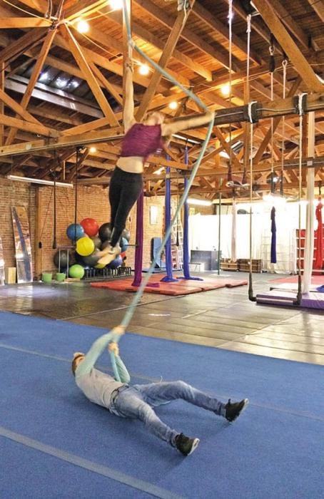 Я с Дереком пробую движения в воздухе для финального танца. Держать весь вес на одной руке и одновременно вращаться – не так-то просто!