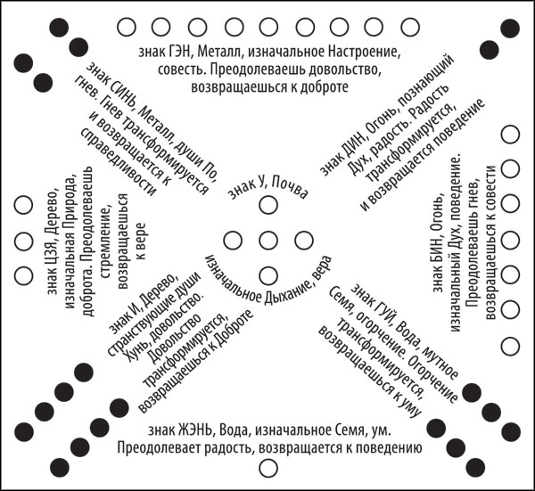 На Пути возвращения из посленебесного состояния в прежненебесное раньше всего возвращает Вера. У Лао-цзы говорится: «Мерцание и трепетание, и в середине его присутствует предмет. Таинственное и темное, и в середине его присутствует Семя. Семя его является предельно истинным, а в середине его присутствует Вера»[33]. Эта Вера и есть Вера возвращения к прежненебесному. С возвратом этой Веры тут же проявляется (обнаруживается) Почва знака У, а внутри нее находится полновластный хозяин. В результате все множество карм становятся пустым, а поток мыслей (разумных предпочтений) полностью замирает. Тогда более не грустят и рождается знание.