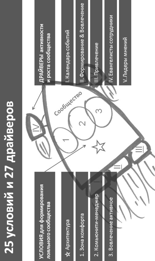 25 условий и 27 драйверов успешного сообщества (упрощенная инфографика: Комьюнити-ракета)