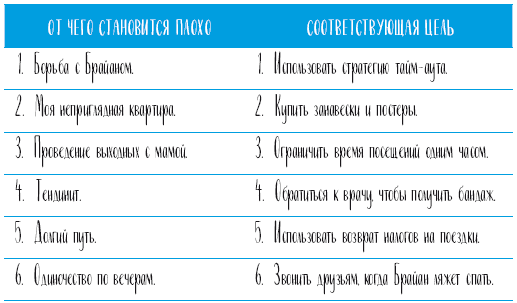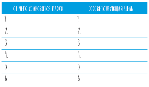 В приведенной далее форме создайте собственный список. Вспомните все, от чего становится плохо, в левой колонке.