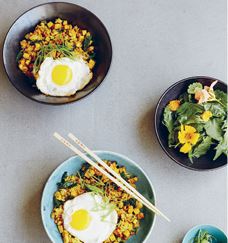 Мама всегда готовила для нас блюда из жареного риса, особенно когда у нее оставался рис после вчерашнего ужина. Простое добавление турмерика сразу же преображает простой рис в совершенно другое блюдо.