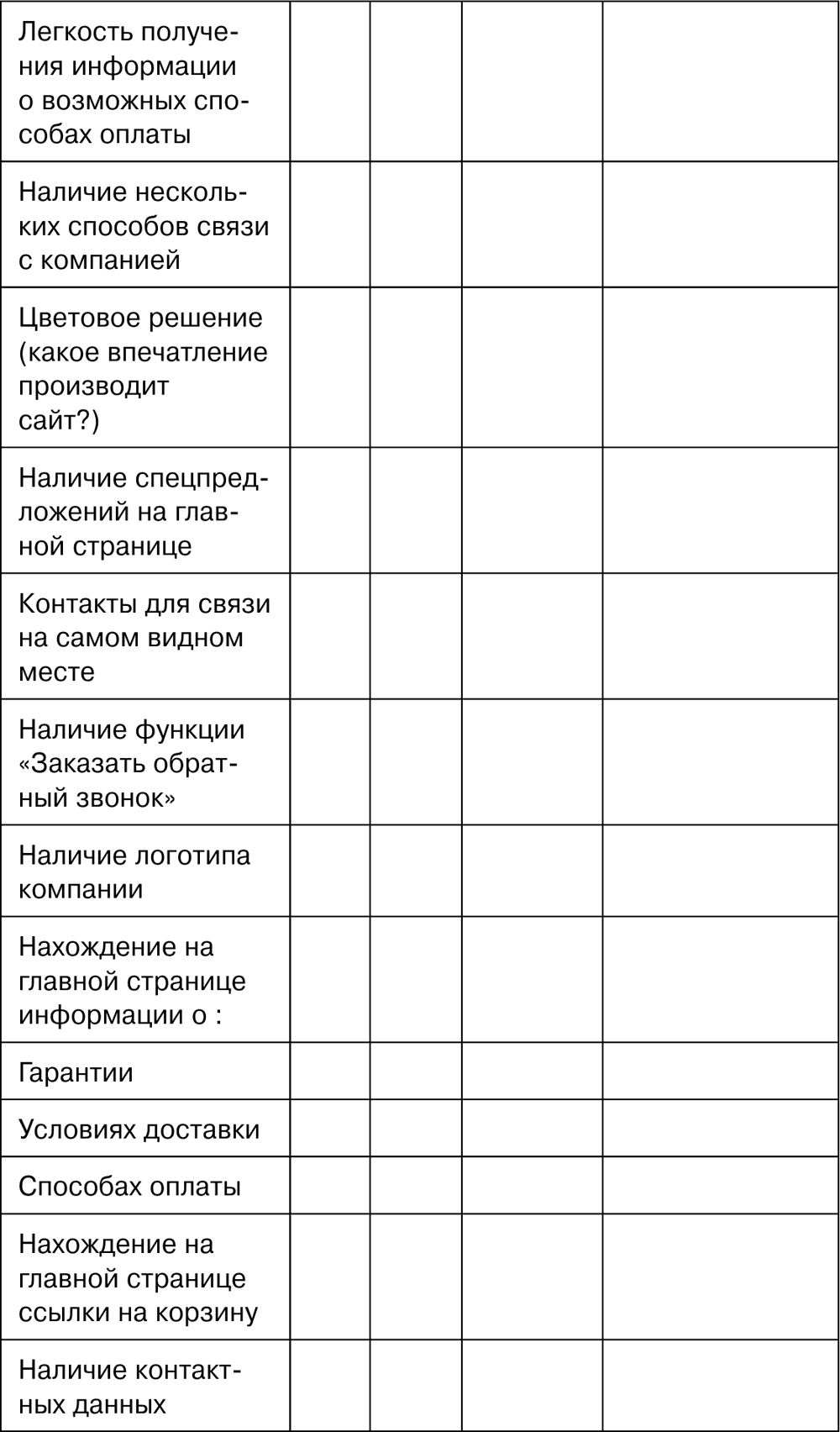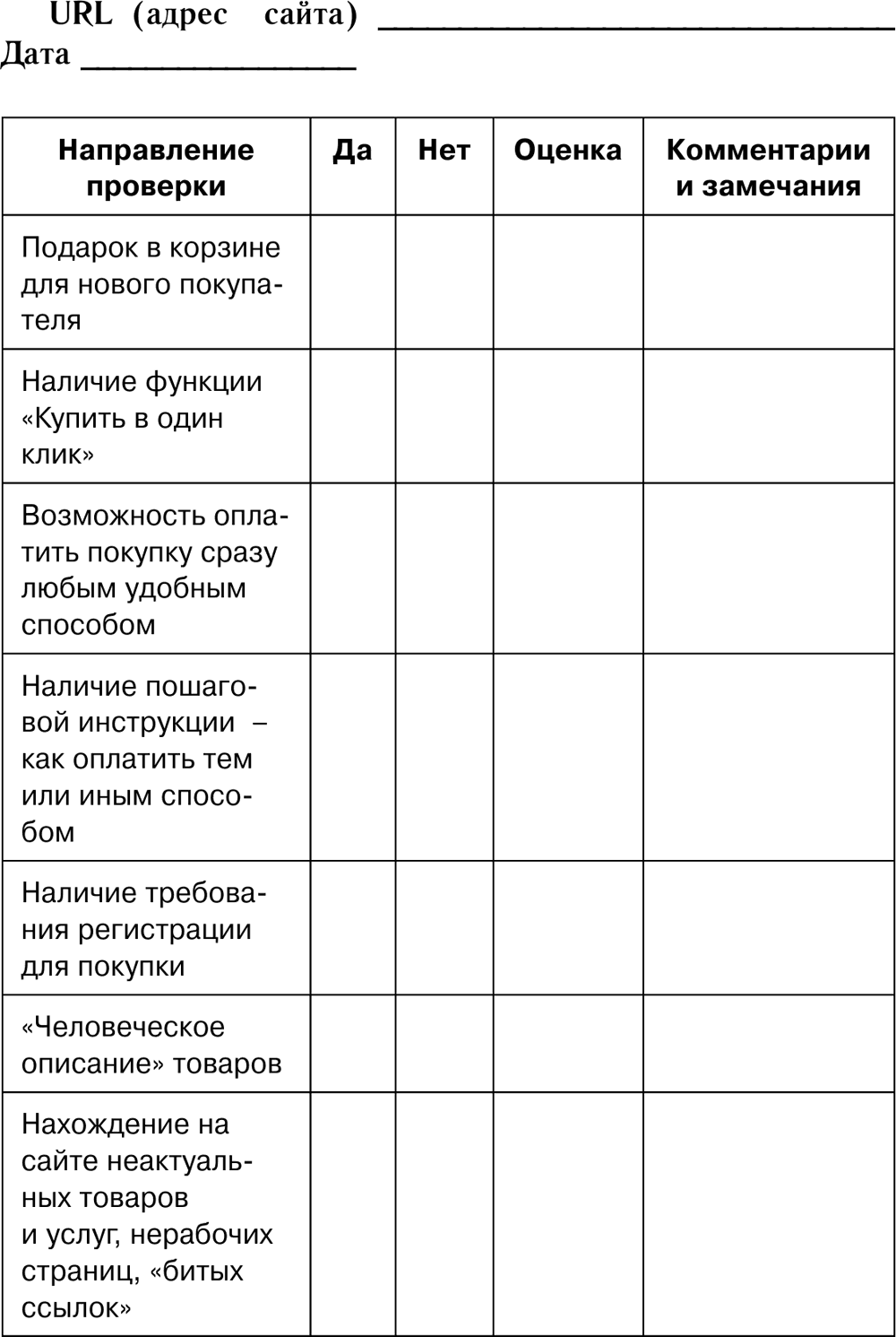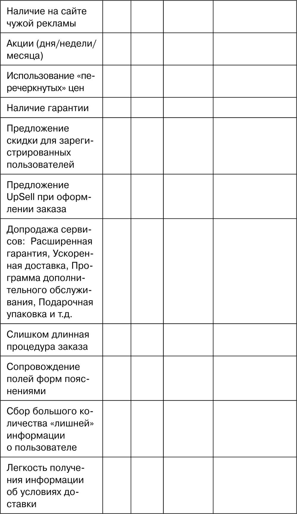Чек-лист помогает нам быстро определить «продающие» свойства сайта и дыры в них