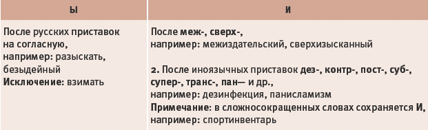 Попробуйте научить ребенка самостоятельно создавать обобщающие таблицы и схемы. И ваш ребенок станет автором уникальных творений, начнет осмысленно запоминать правила. Кроме того, такая работа развивает аналитические способности и активизирует зрительную память. Начать можно с простейших тем, например «Ы / И после приставок». Вот как может выглядеть обобщающая таблица.