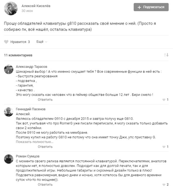 Вот хороший пример атмосферы взаимовыручки, которую создал комьюнити-менеджер сообщества Logitech во «ВКонтакте».